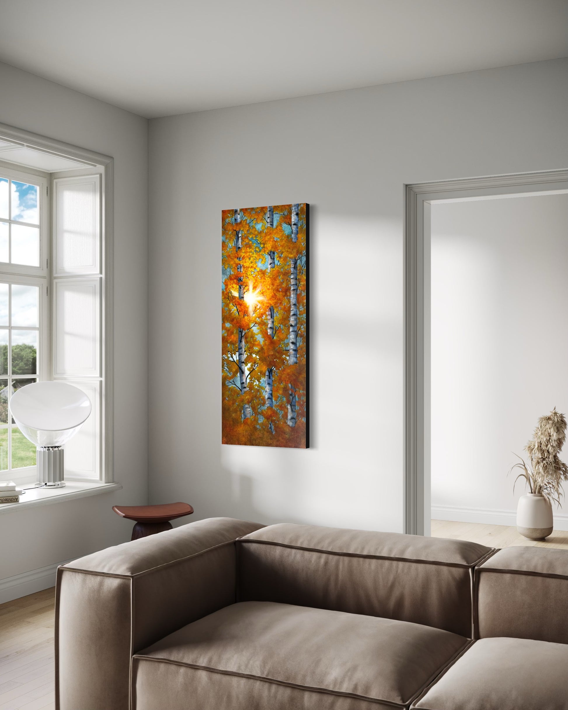 Bring the outdoors in with this original one-of-a-kind painting. On 1.5" wooden stretcher, sides painted black, ready to hang as is. This painting is full of texture and layers of paint, and makes for a unique gift or addition to any space... home, office or cottage.