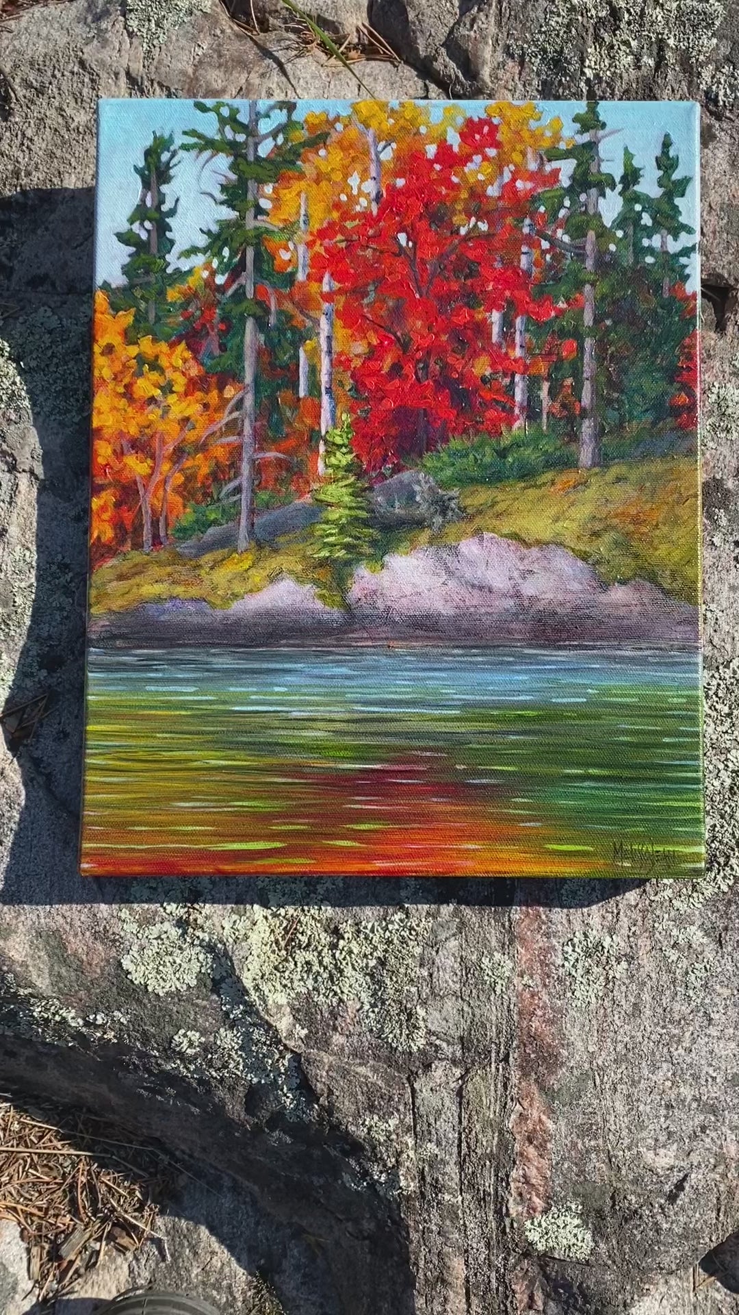 This painting was started on a boat on Lake of the Woods and finished on a nearby island on the south end of the Lake on a crisp fall day.