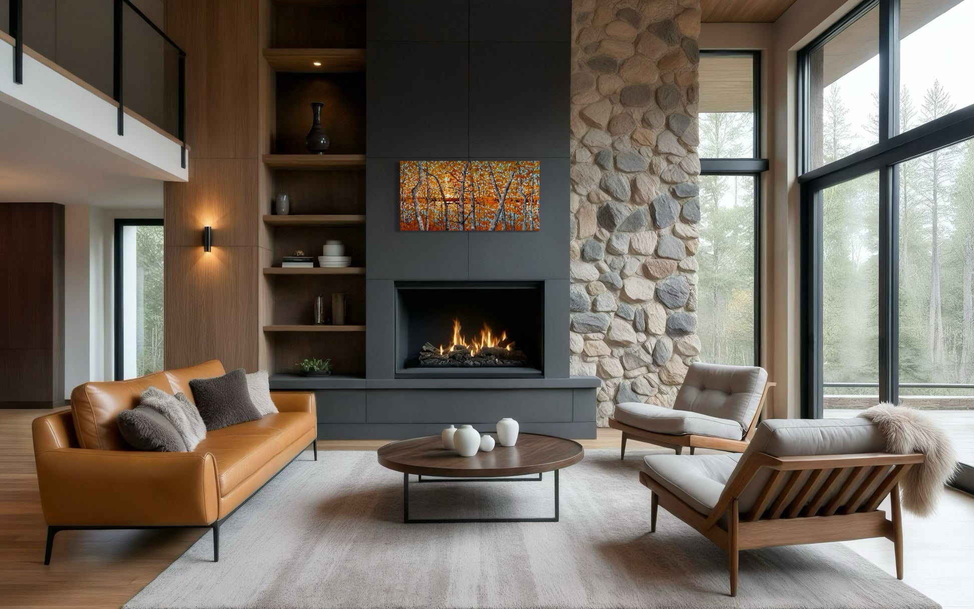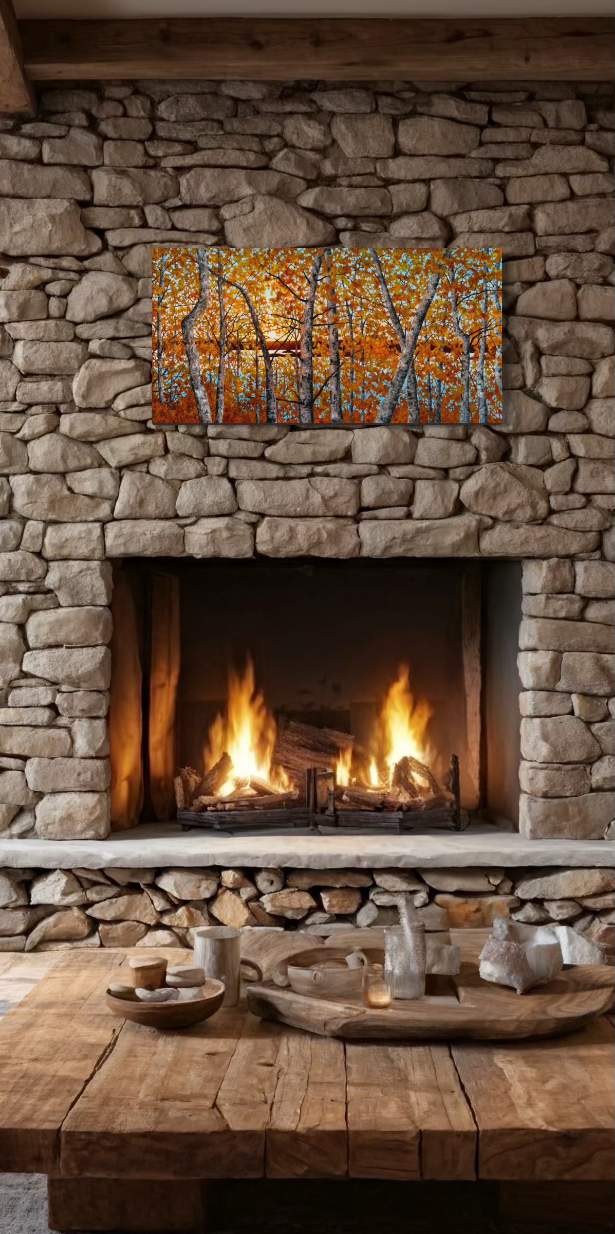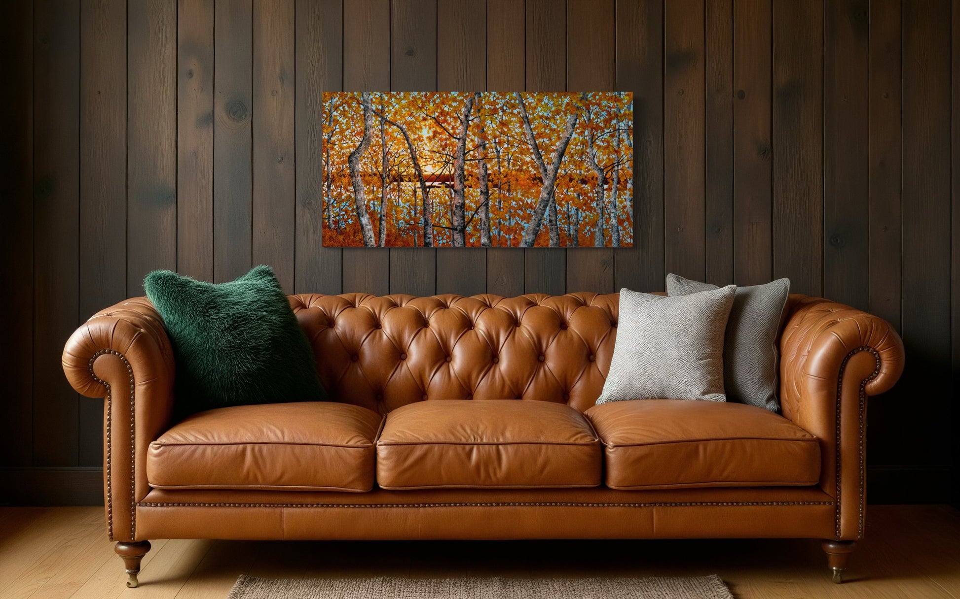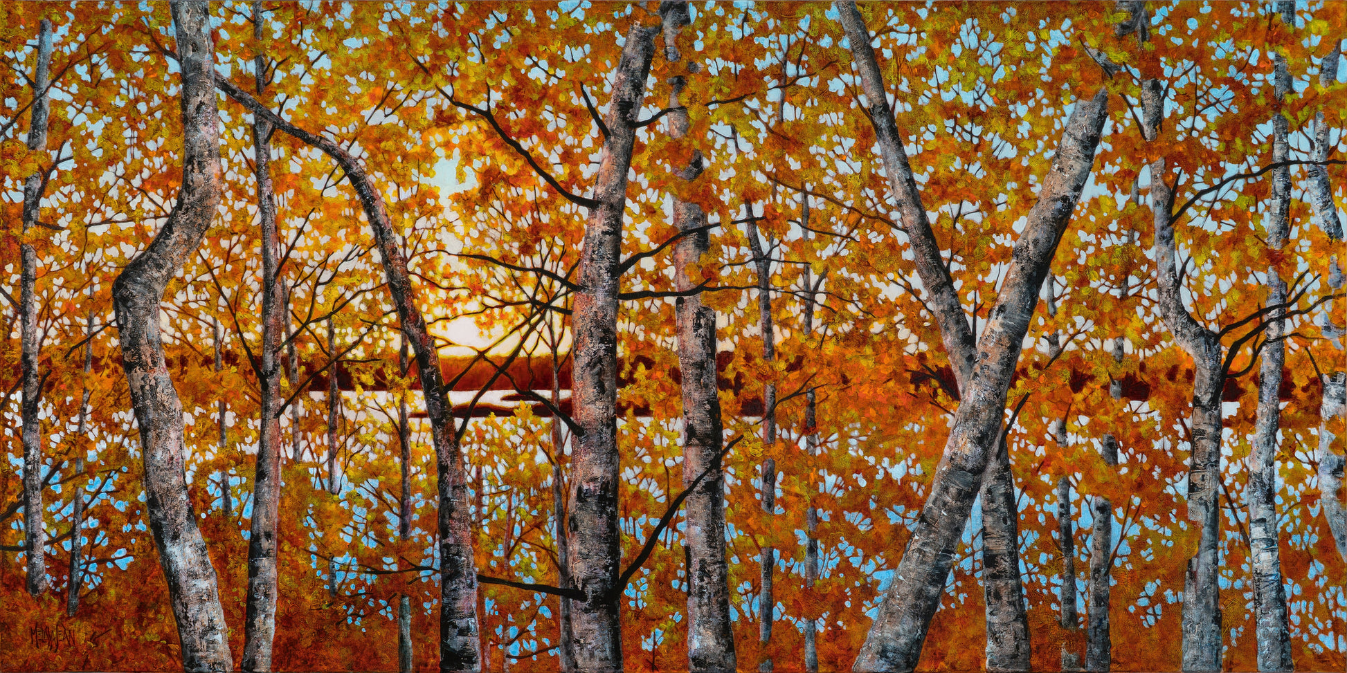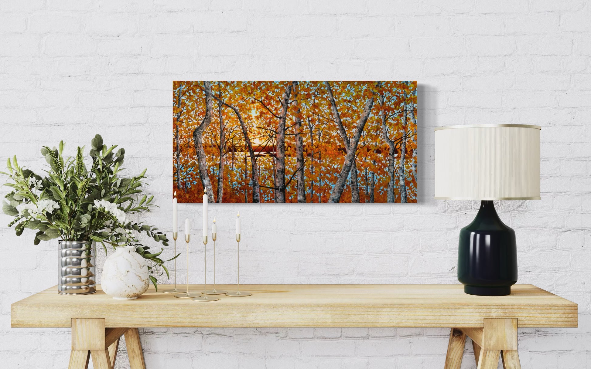 This print is a smaller sized reproduction of the original painting "Autumn's Dance" (24"x48") (sold) by Melissa Jean.