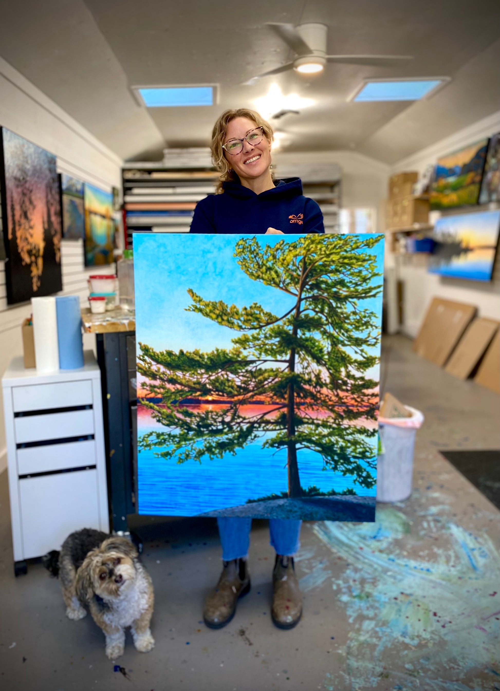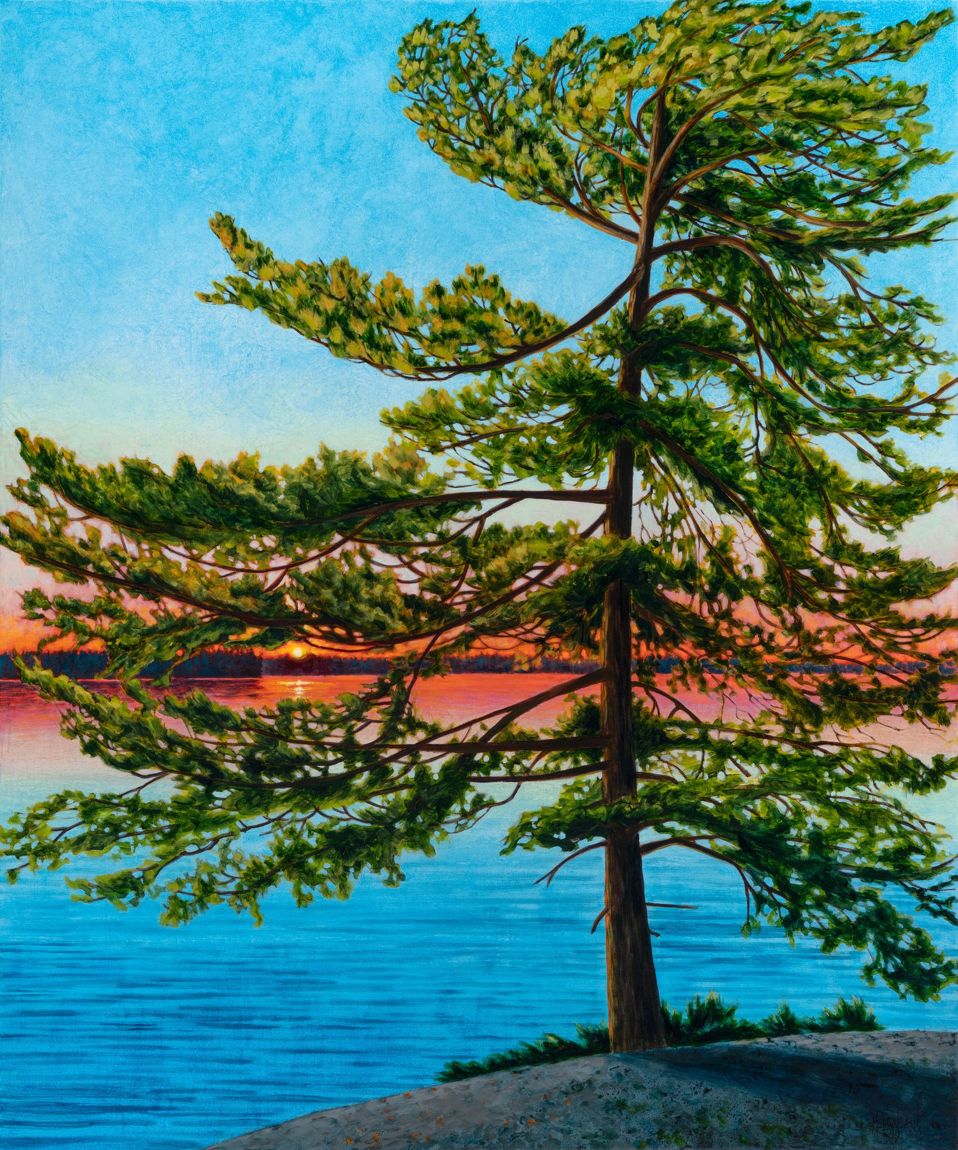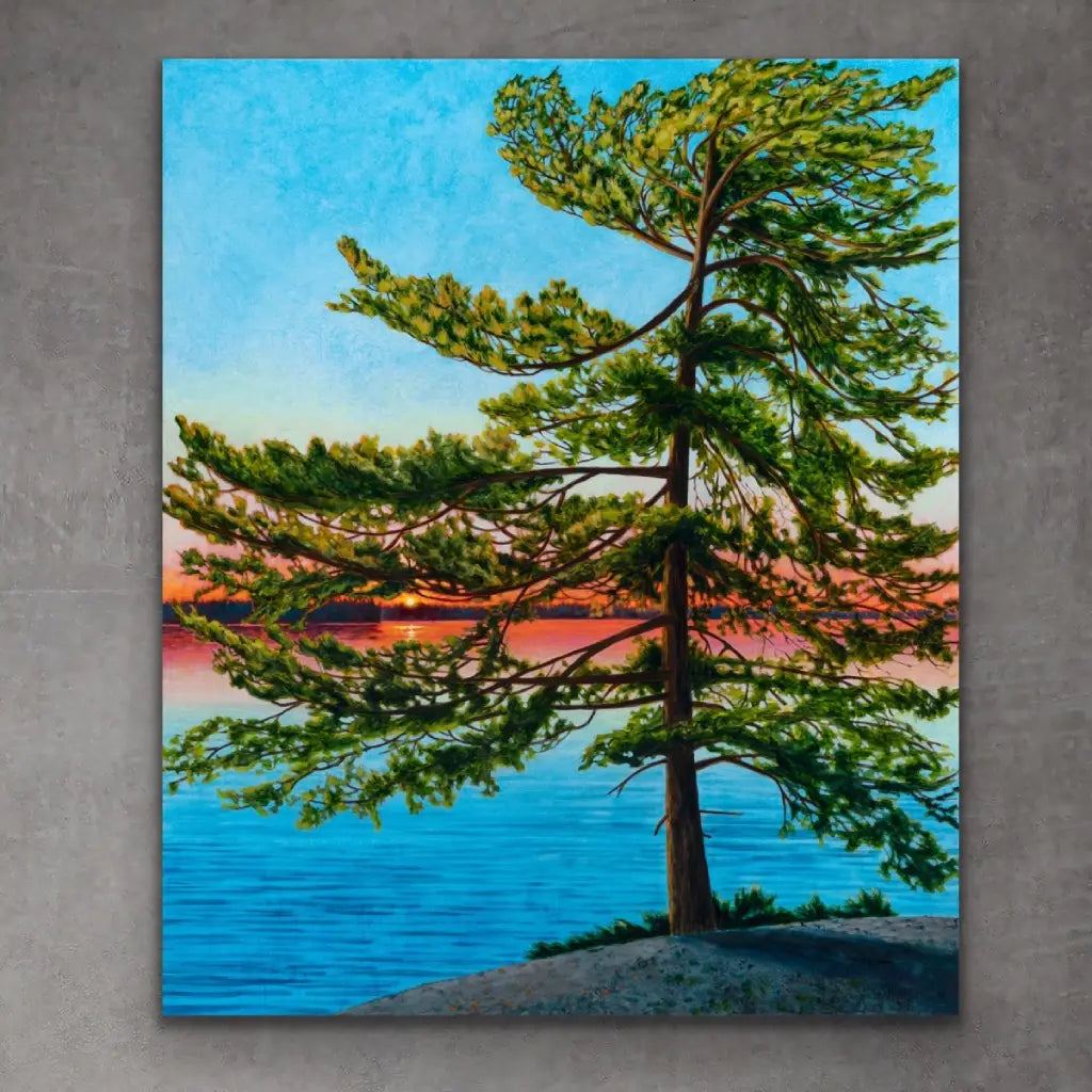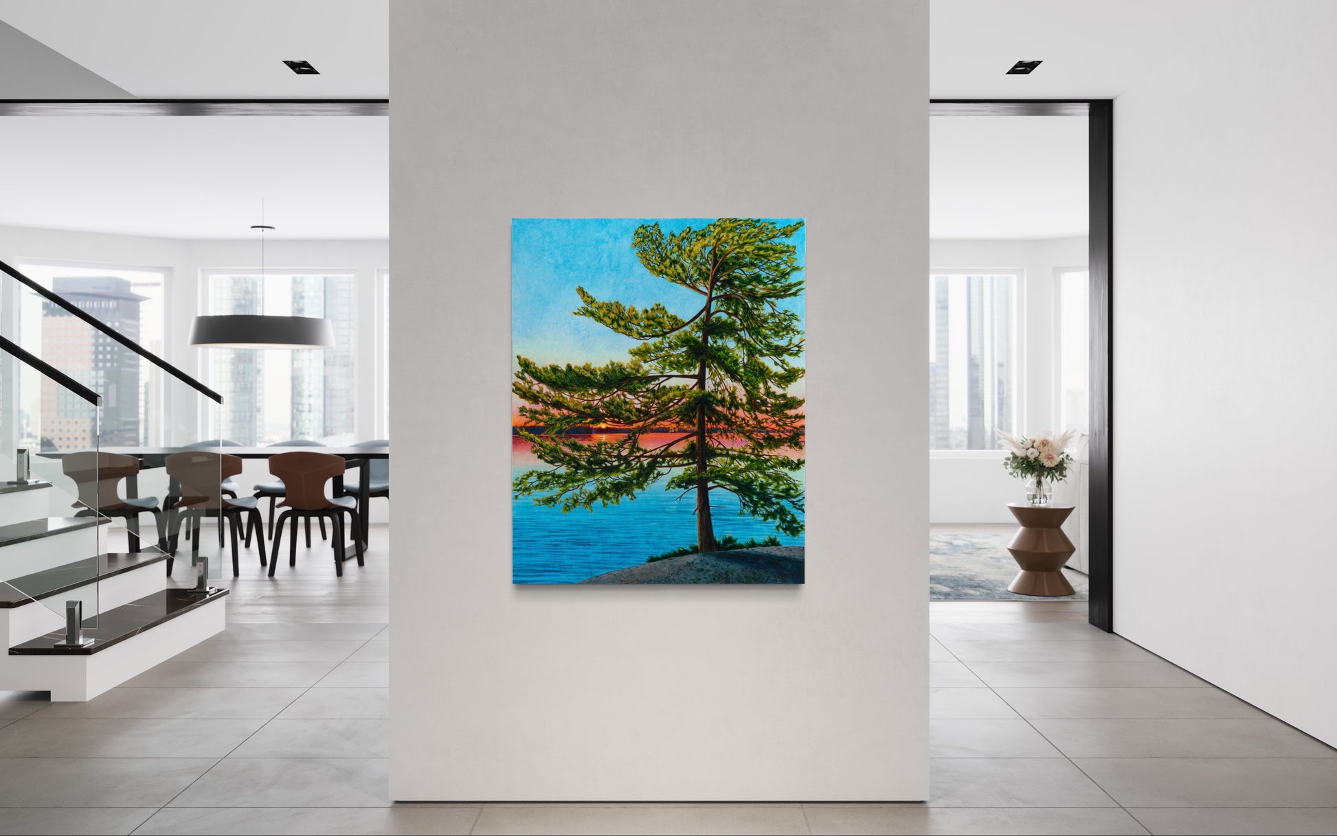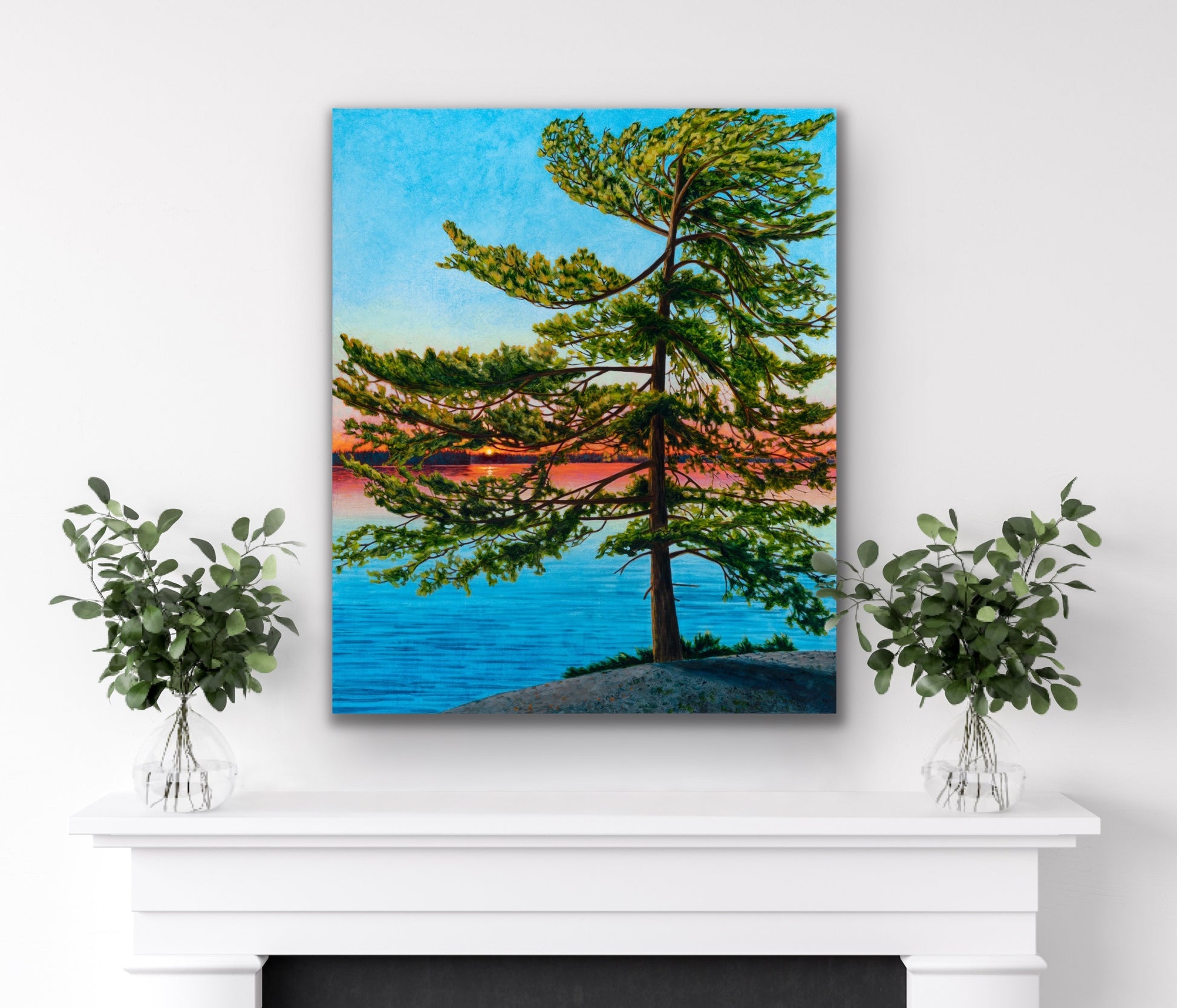 What inspired this painting: I love the crazy pines in this area, shaped by wind and weather, they are second to none. They each have a character of their own. This one reminded me of an elegant, strong and graceful woman, twirling, arms outstretched, eyes closed, dancing to her own music in complete contentment with her environment.