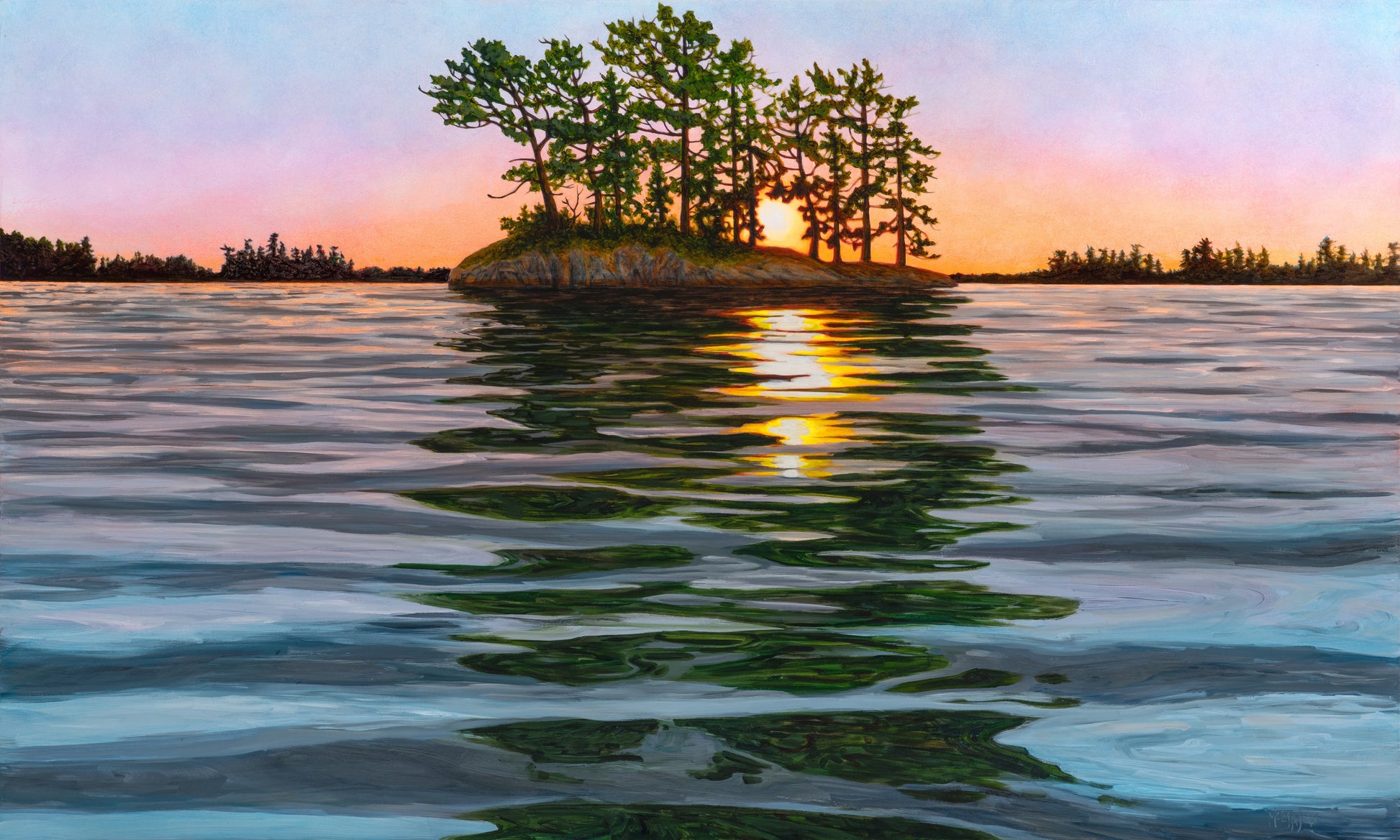 This print is a smaller sized reproduction of the original painting "Golden Hour Glow" (36"x60") by Melissa Jean.