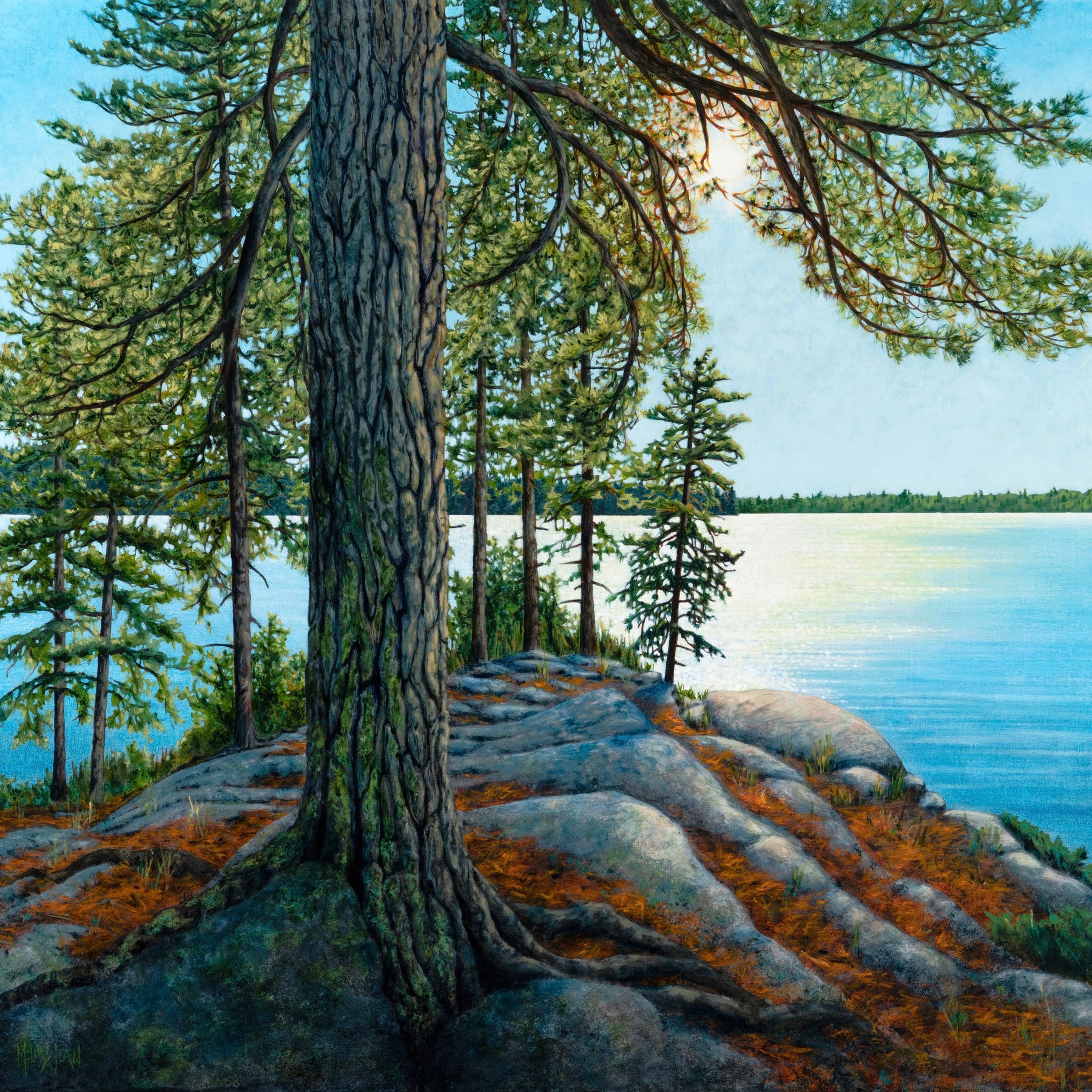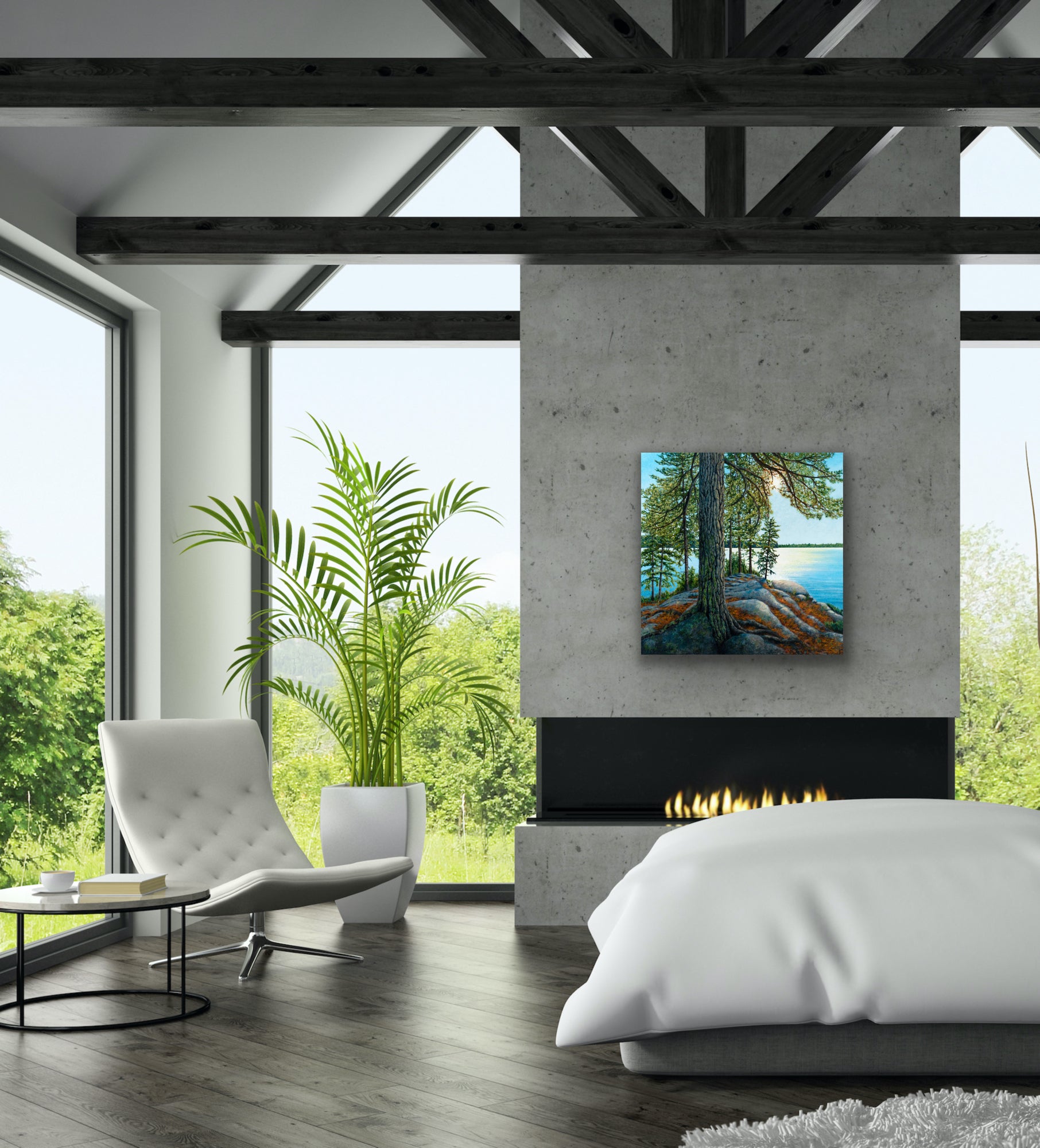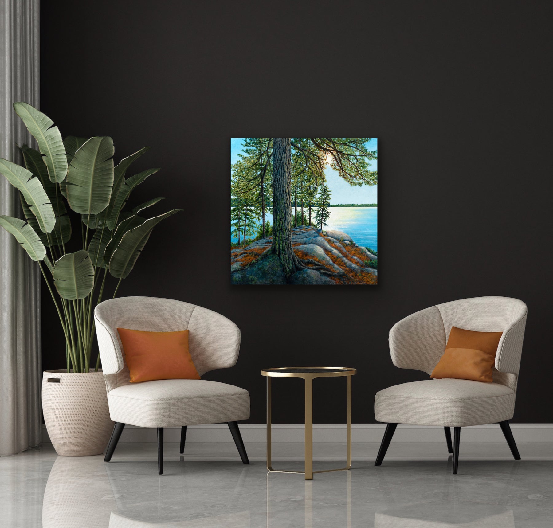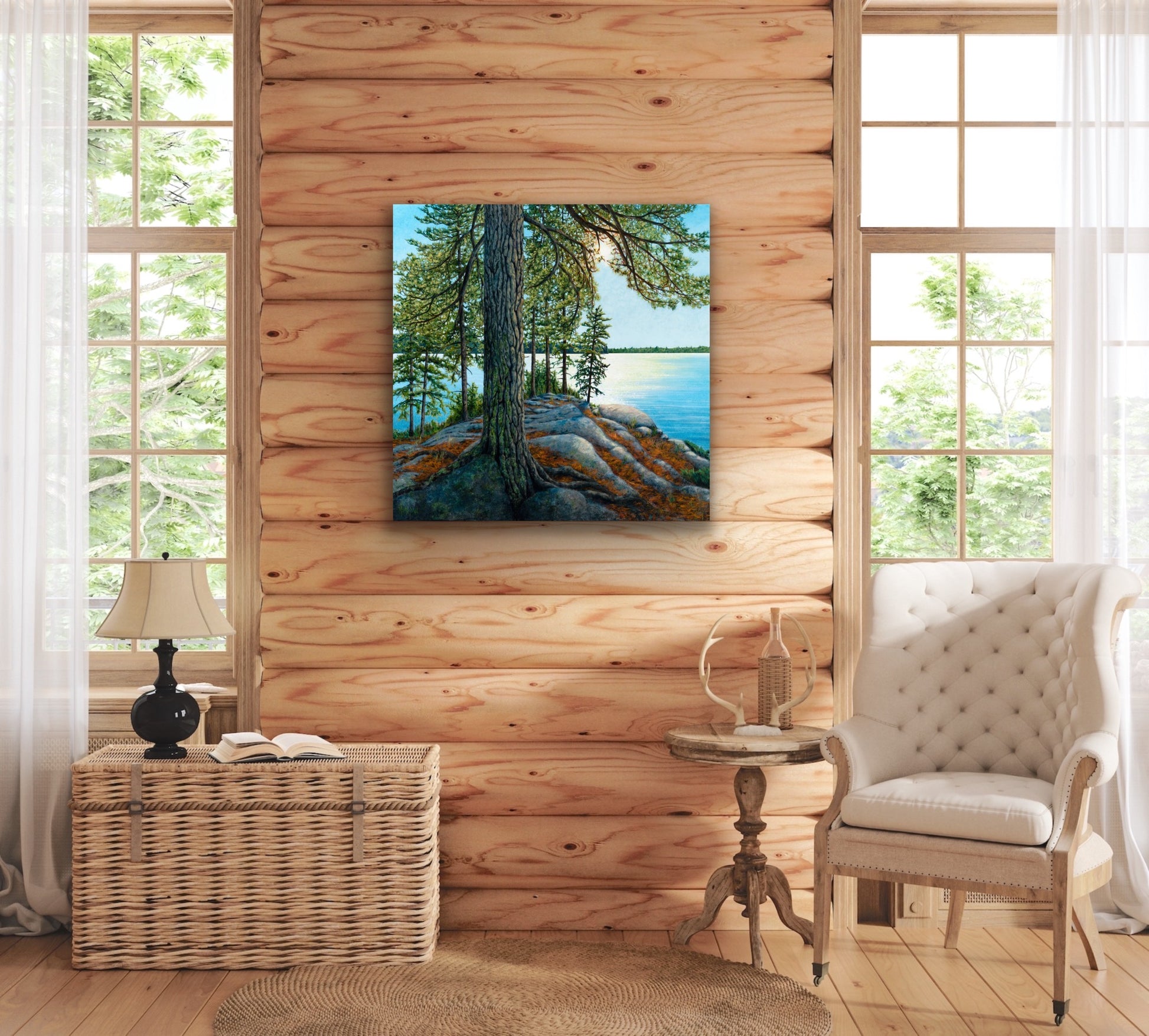 Friends of ours saw this beautiful piece and told us bout it. It is the view from our cabin. After meeting Melissa and seeing it in person we had to have it. Fantastic purchase experience. So happy having our lake home in our home.