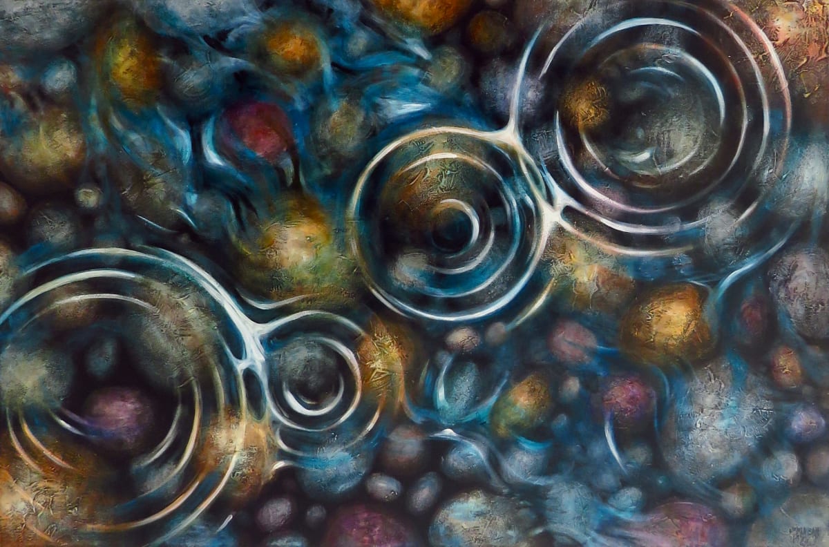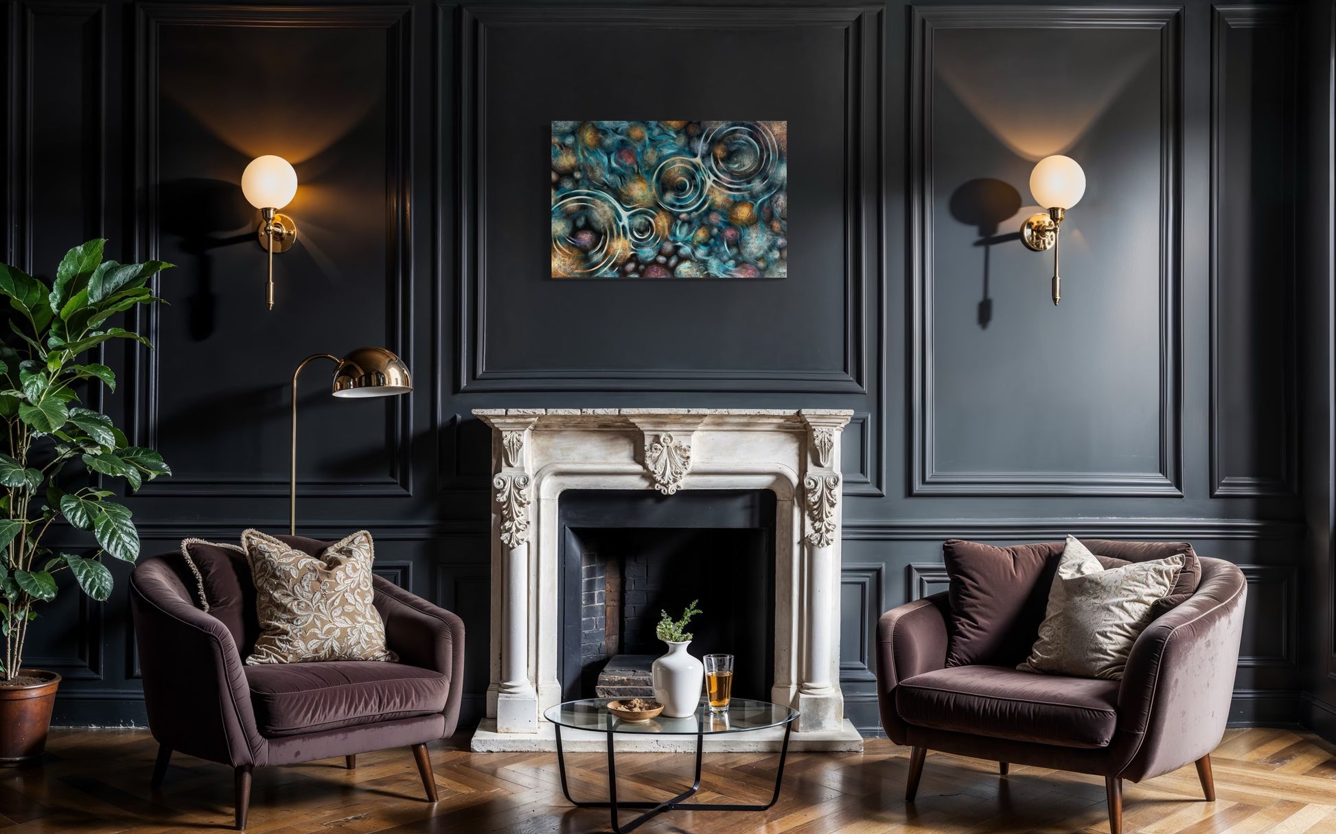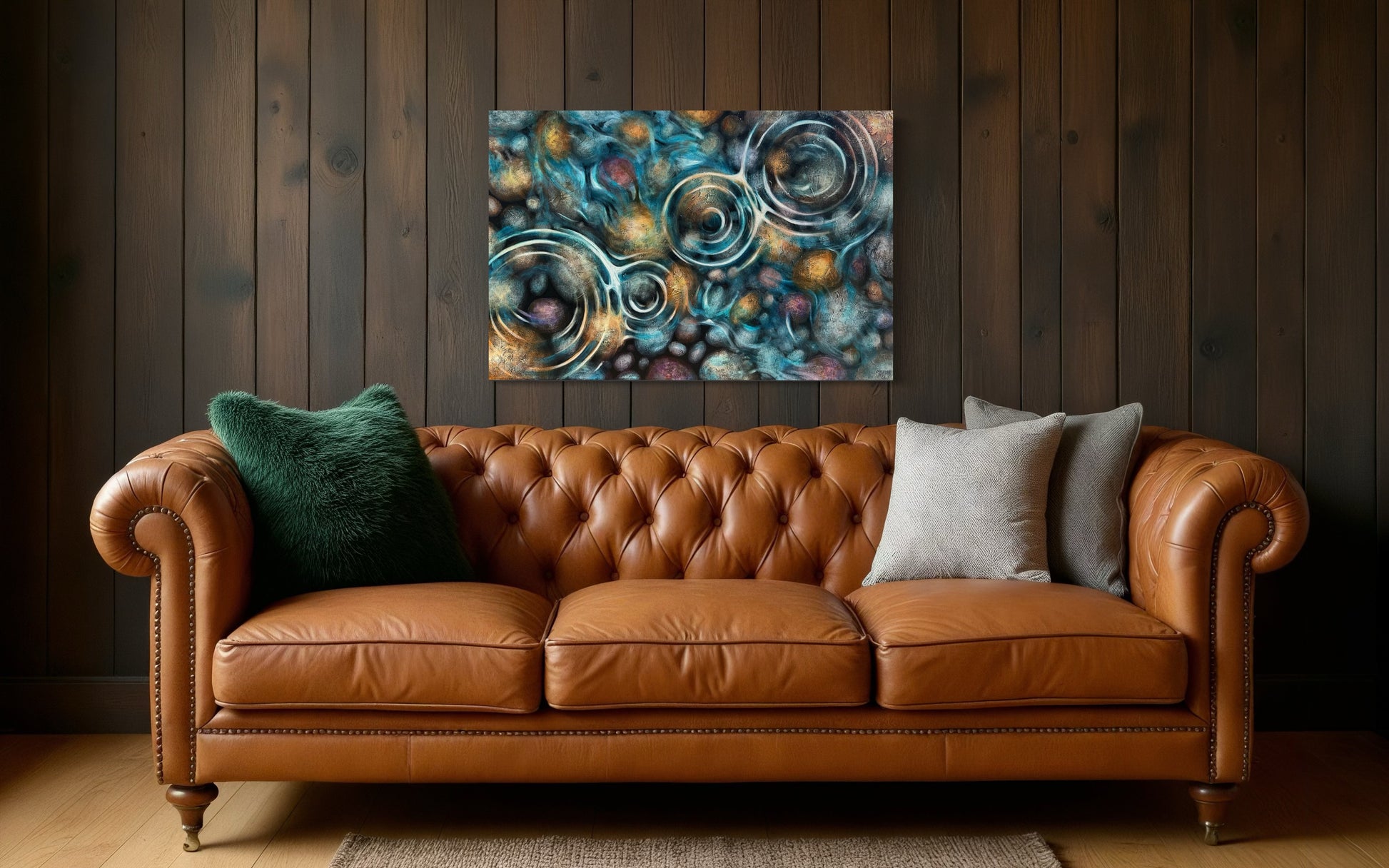 Bring the outdoors in with this original one-of-a-kind painting. On 1.5" wooden stretcher, sides painted black, ready to hang as is. This abstract painting is full of texture and layers of paint, and makes for a very unique gift or addition to any space... home, office or cottage.